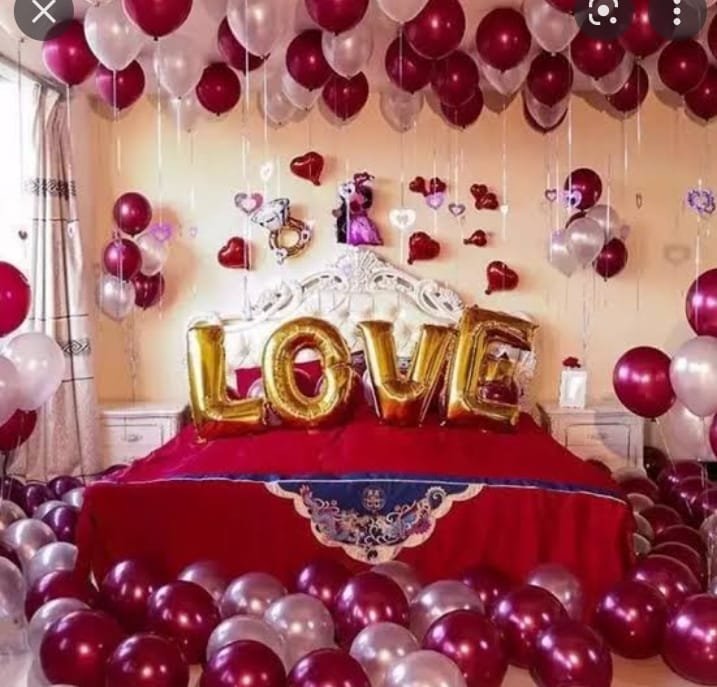 first night decoration services in Jaipur. We offer dreamy setups with roses, heart-shaped balloons, LED lights, and scented candles to create an intimate and romantic ambiance for the newlyweds. Turn your bedroom into a romantic haven with our first night decoration in Jaipur.